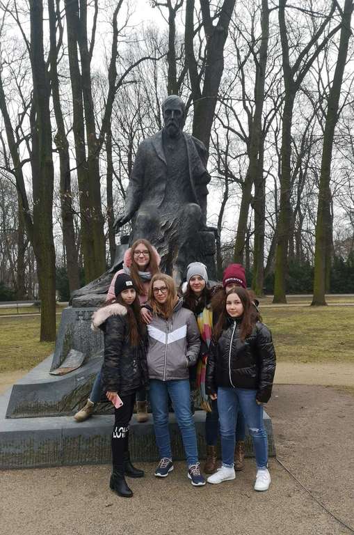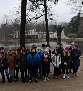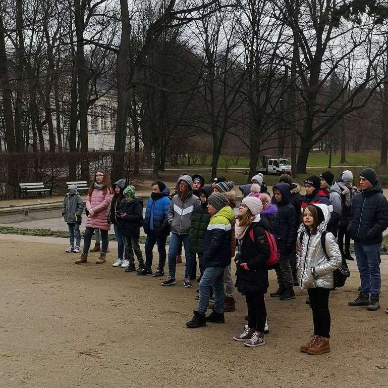 Po dotarciu do Stolicy spotkaliśmy się z przewodnikiem, który przybliżył nam historię zwiedzanych miejsc. Spacer po Warszawie rozpoczęliśmy od Belwederu – siedziby Prezydenta RP, następnie przeszliśmy do Łazienek Królewskich mijając po drodze gmach Kancelarii Prezesa Rady Ministrów mieszczący się przy Alejach Ujazdowskich. W Parku Łazienkowskim zobaczyliśmy najbardziej rozpoznawalny pomnik Chopina, Starą i Nową Oranżerię, Biały Domek, Amfiteatr oraz Pałac na Wyspie.