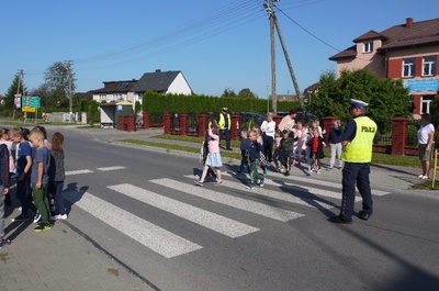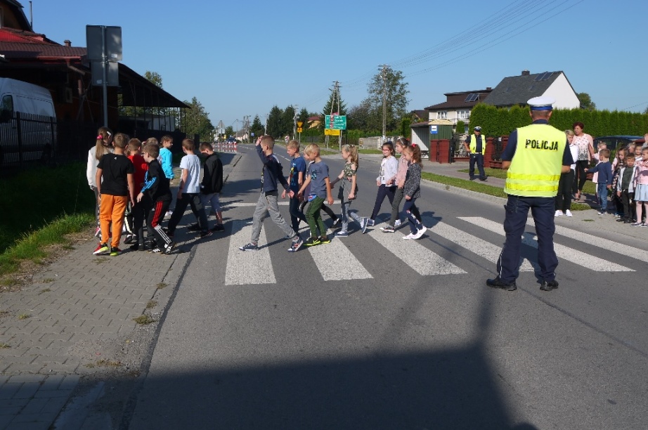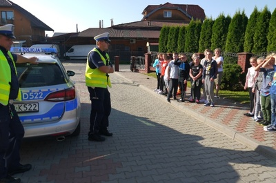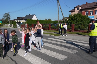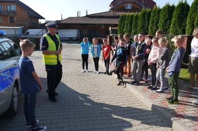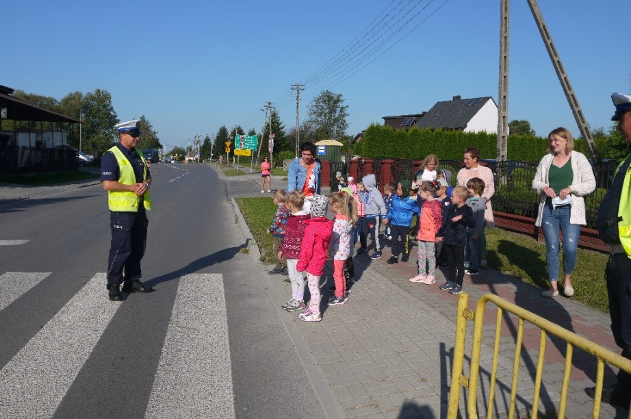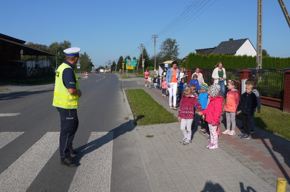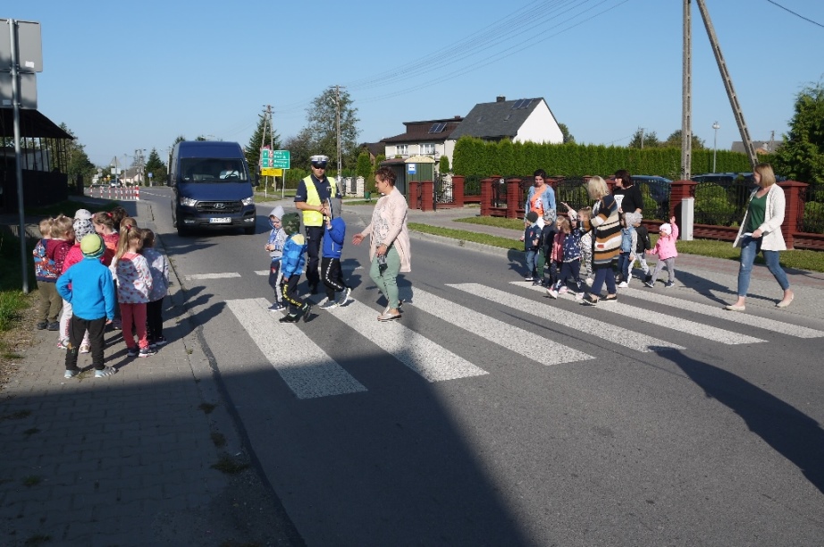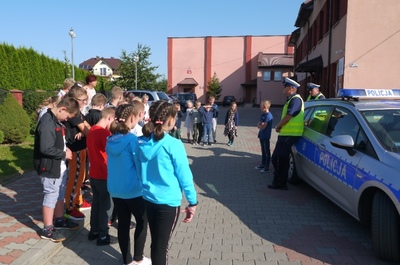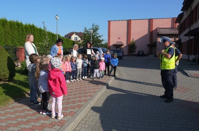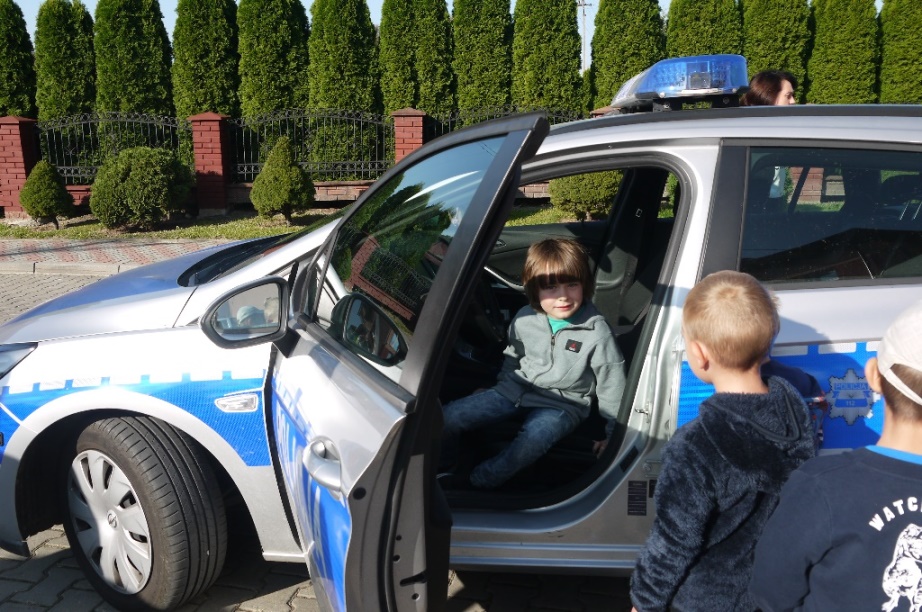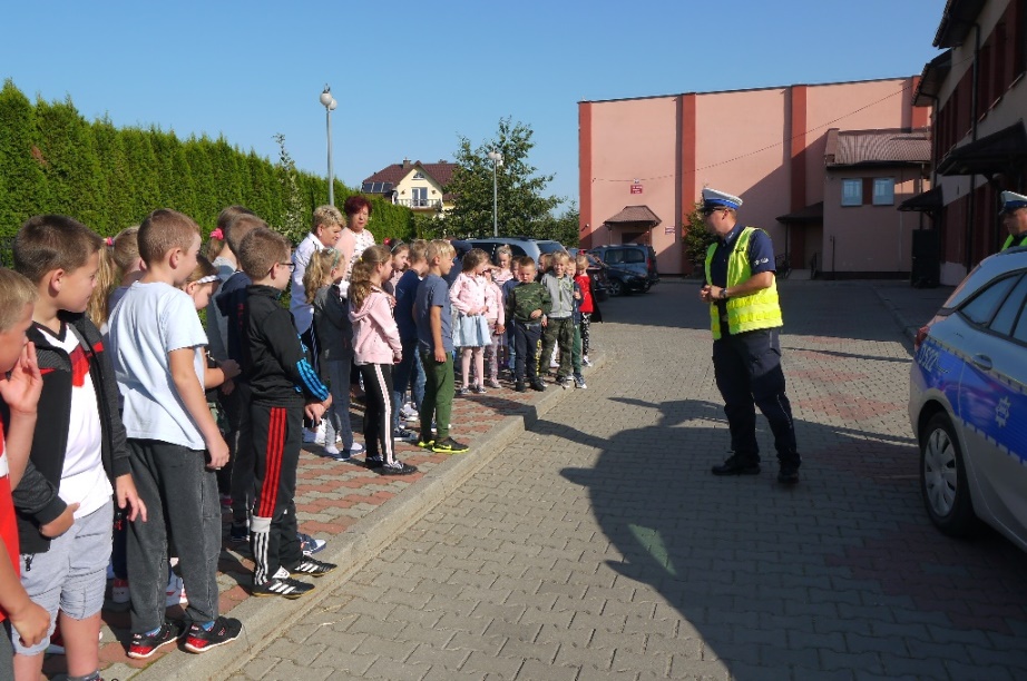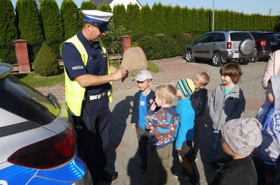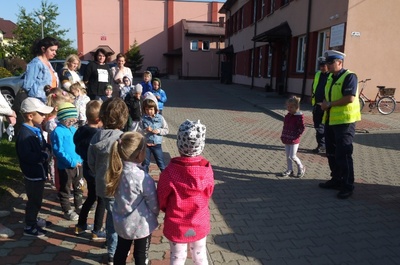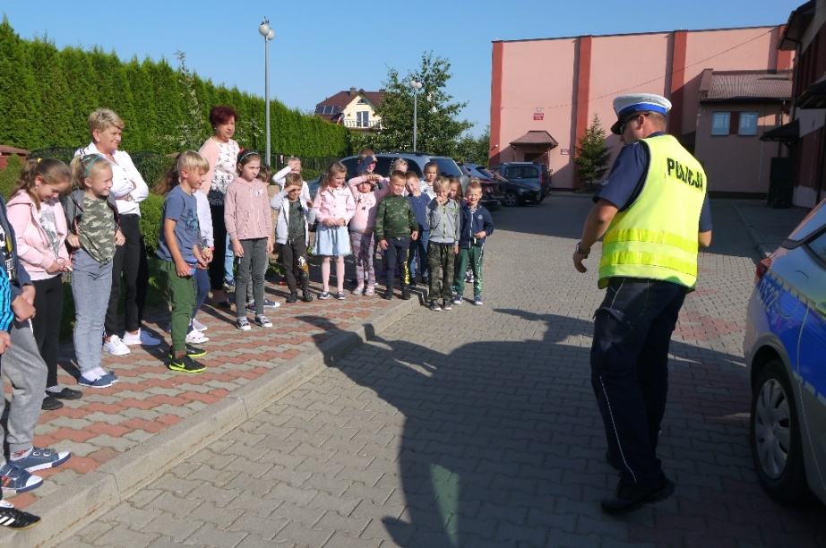 22 września 2020 r. naszą szkołę odwiedzili policjanci z Komendy Powiatowej Policji w Kraśniku: asp. Piotr Andrzejewski i sierż. sztab. Sebastian Oszust. Tematem spotkania było utrwalenie z dziećmi zasad ruchu drogowego oraz przypomnienie zagadnień dotyczących bezpieczeństwa dzieci w przedszkolu i w domu. Pan policjant, w formie praktycznej, przypomniał podstawowe zasady zachowania się podczas przechodzenia przez jezdnię. Następnie wytłumaczył jak należy zachować się w kontaktach z obcymi ludźmi, jak dbać o bezpieczeństwo własne i innych oraz do kogo zwracać się o pomoc w sytuacji zagrożenia. Dzieci z dużym zainteresowaniem słuchały rad i wskazówek zaproszonych gości. Bardzo serdecznie dziękujemy.