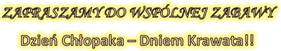 Zachęcamy, by tego dnia wszyscy chłopcy przyszli do szkoły w krawatach, a dziewczynki dołączyły do zabawy i zawiązały sobie apaszki. Zapraszamy wszystkich uczniów do wzięcia udziału w naszej zabawie. Niech ten jesienny dzień zostanie ubarwiony kolorowymi elementami naszej garderoby.