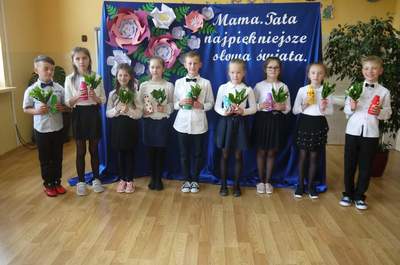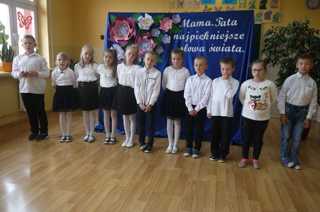 Aby uczcić w szczególny sposób te piękne święta najmłodsi uczniowie naszej szkoły przygotowali dla ukochanych rodziców bogatą część artystyczną, na którą składały się wiersze i piosenki pełne miłości, krótkie scenki oraz przepiękne tańce. Rodzice mogli podziwiać występy swoich pociech na facebooku gdyż ze względu na obostrzenia sanitarne nie mogliśmy ich zaprosić na uroczystość do szkoły. Oprócz występów, dzieci obdarowały kochane mamy i tatusiów własnoręcznie wykonanymi upominkami. Mamy nadzieję, że w przyszłym roku spotkamy się w szkole, aby wspólnie obchodzić te jakże piękne święta