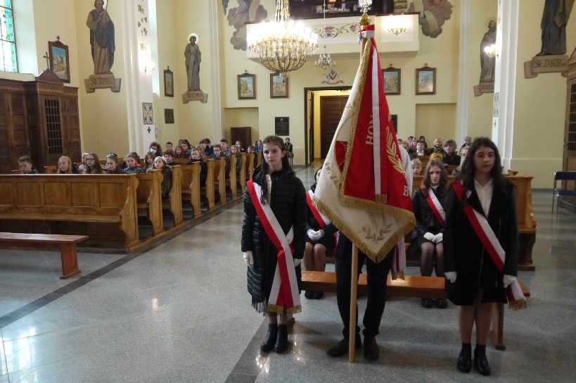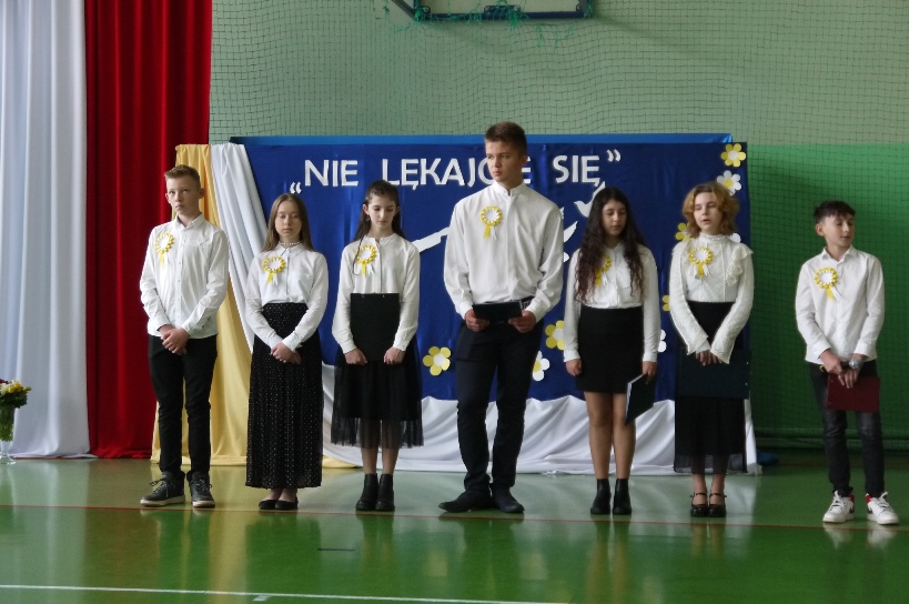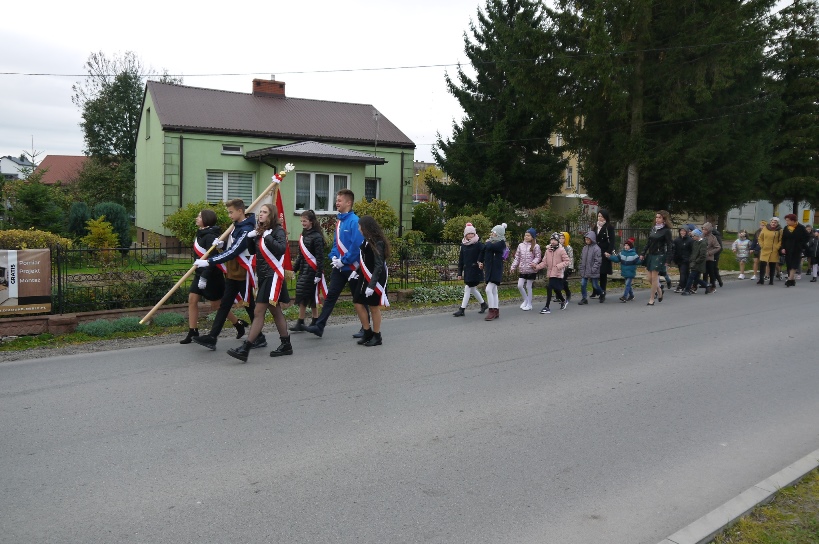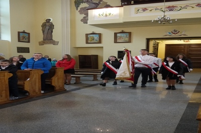 Obchody tego dnia rozpoczęły się uroczystym przemarszem nauczycieli i uczniów wraz ze sztandarem szkoły do kościoła parafialnego, w którym ks. Henryk Jargiło odprawił Mszę Świętą z okazji trzeciej rocznicy nadania naszej szkole imienia św. Jana Pawła II.