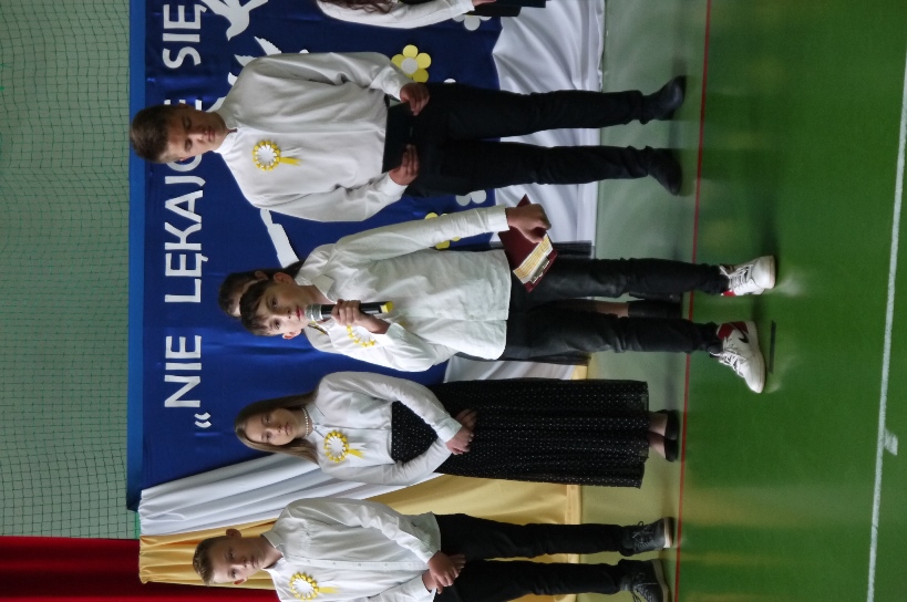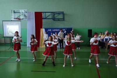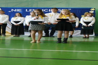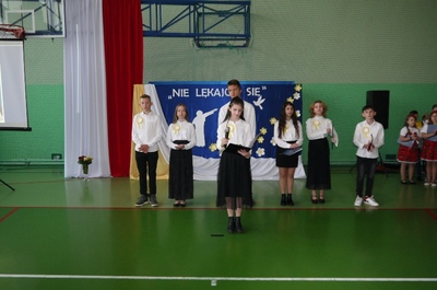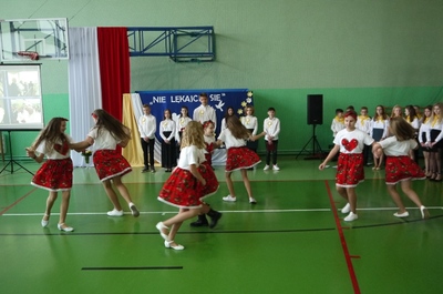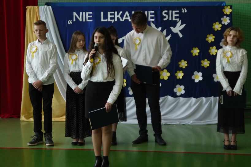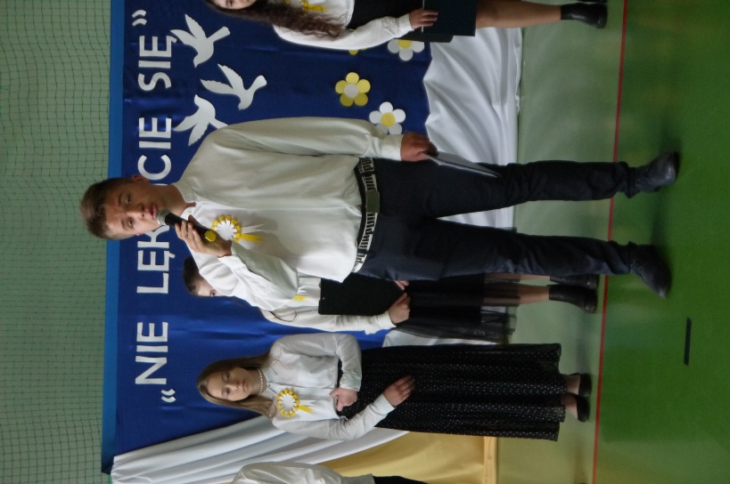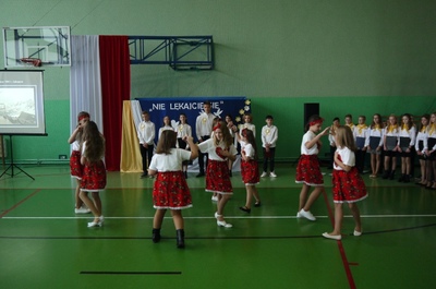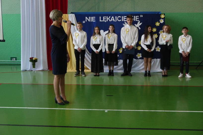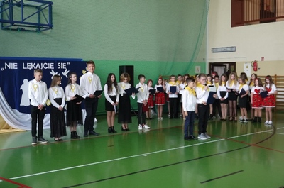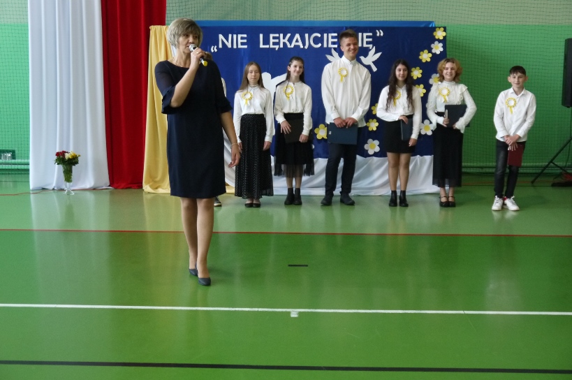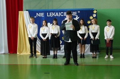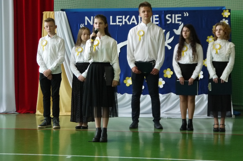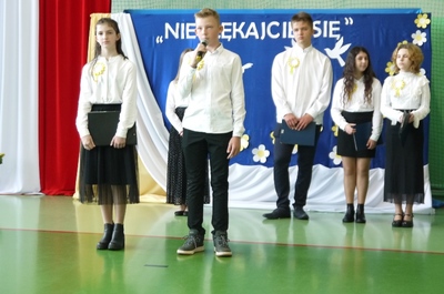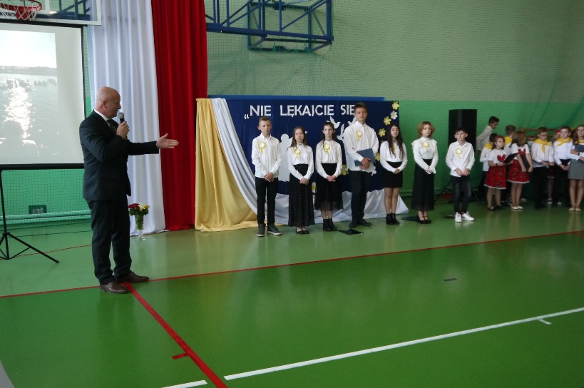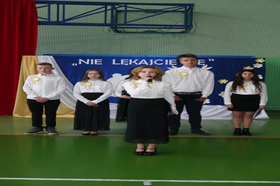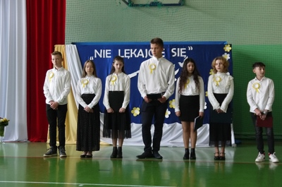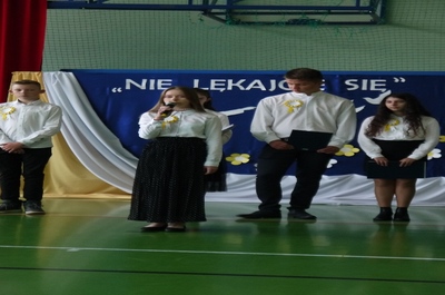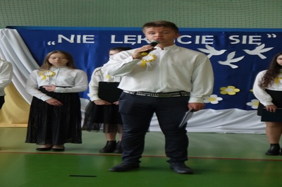 Po zakończonej Eucharystii wszyscy udali się do szkoły, gdzie uczniowie zaprezentowali montaż słowno-muzyczny pod hasłem „Nie lękajcie się!”. W programie artystycznym nawiązywali do nauk głoszonych przez papieża – Polaka i podkreślali, iż powinien być On dla nas wszystkich wzorem do naśladowania.