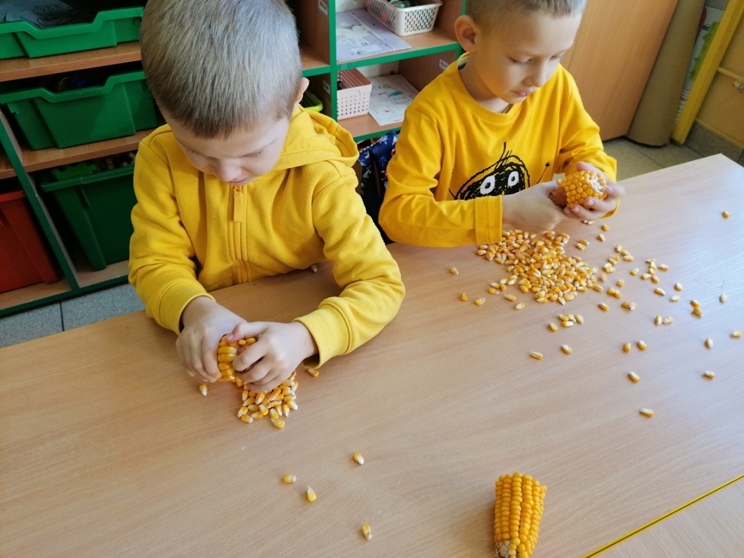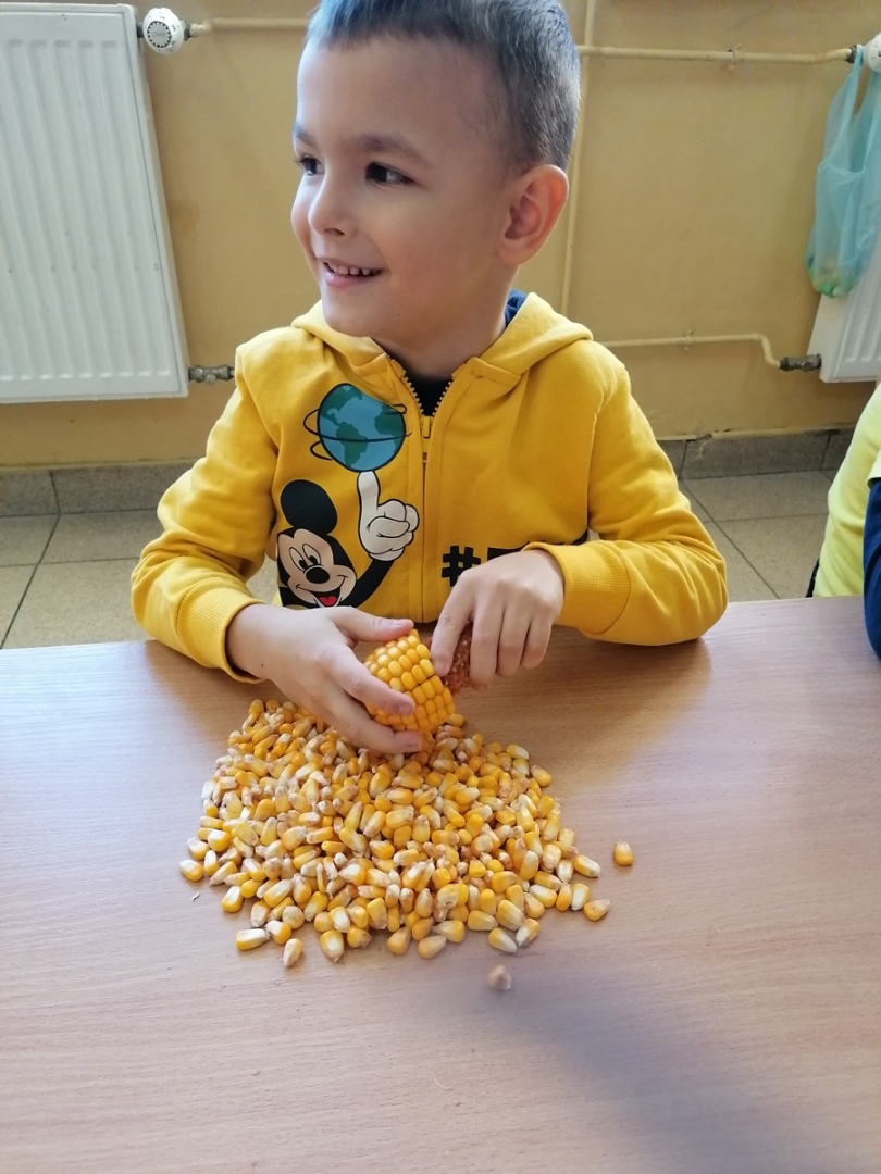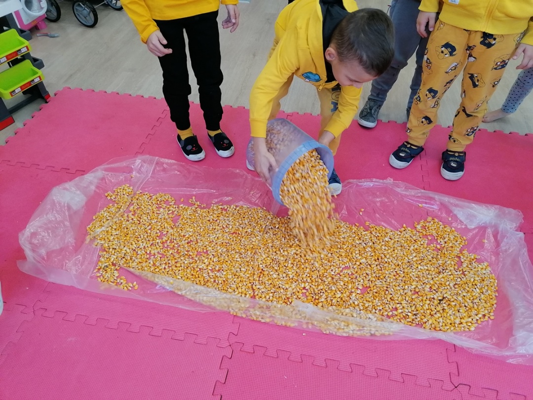 22 października w naszym przedszkolu zrobiło się żółto, a wszystko za sprawą obchodzonego "Dnia Kukurydzy". Dzieci poznały sposób uprawiania kukurydzy, warunki w których rośnie, a także jakie ma zastosowanie. Największą radość sprawiło skubanie kukurydzy, przejście ścieżką sensoryczną i różne zabawy. Oczywiście nie zabrakło też popcornu. Dzień Kukurydzy należał do udanych.