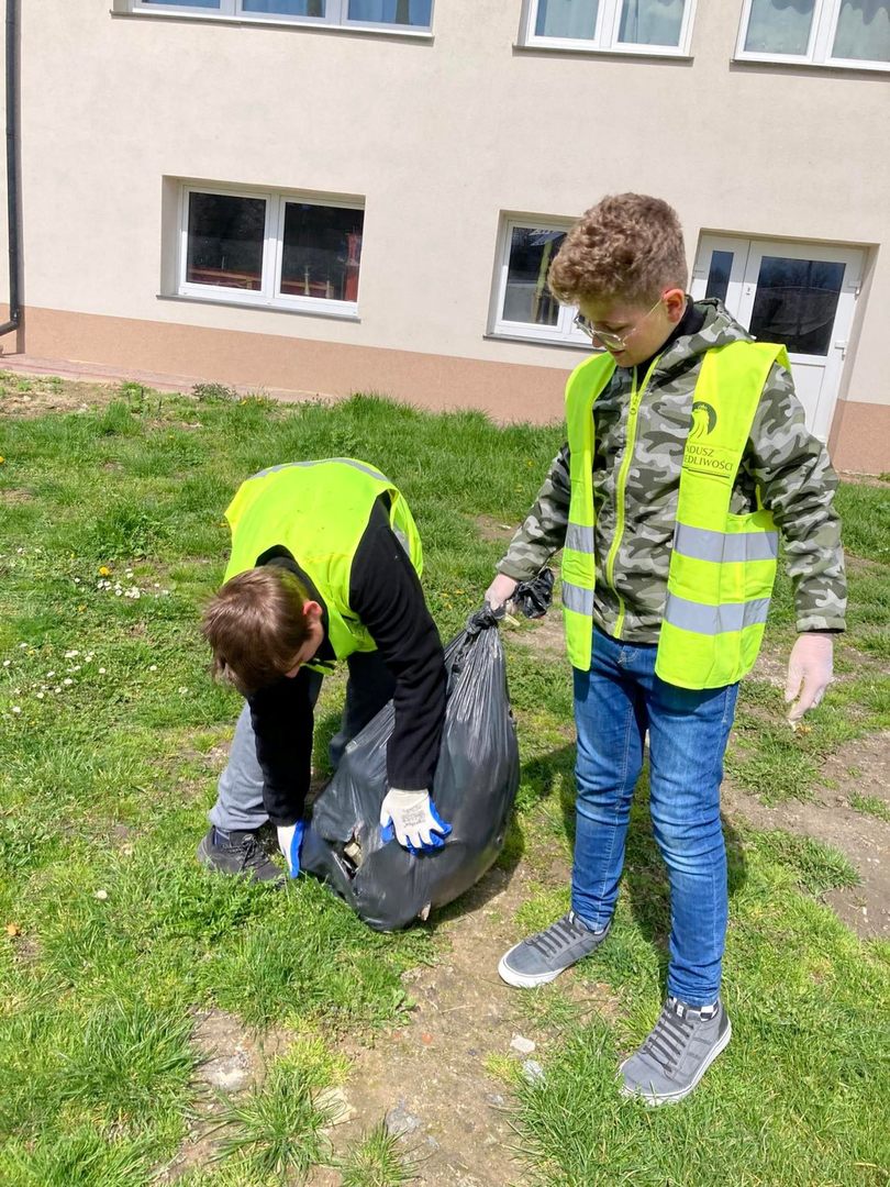 W związku z tym, że 22 kwietniu obchodzimy Międzynarodowy Dzień Ziemi, który corocznie łączony jest z akcją „Sprzątanie świata – Polska” - połączyliśmy te dwa wydarzenia i uczniowie naszej szkoły z wielkim zaangażowaniem zabrali się do pracy.
