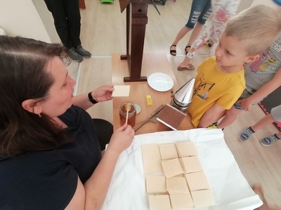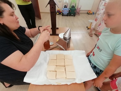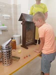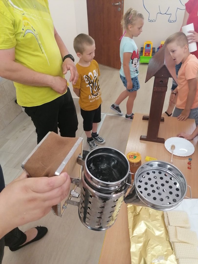 Dużą atrakcją był szklany ul z prawdziwymi pszczołami. Wszyscy spróbowaliśmy świeżego miodu. Mamy nadzieję, że rozmowy o pszczołach przyczynią się do przekonania wszystkich do działań na rzecz ochrony pszczół, które mają ogromne znaczenie zarówno dla człowieka, jak i dla wielu ekosystemów. Poprzez poznanie tych owadów zachęcamy oraz promujemy postawy sprzyjające pszczołom oraz środowisku ich bytowania a także ukazujemy wartości zdrowotne miodu i innych produktów naturalnych.