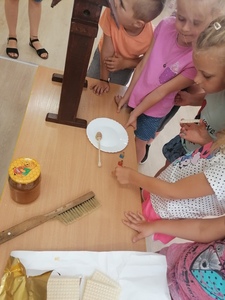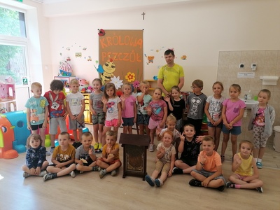 Przedstawili dzieciom historię odkrycia miodu, jako słodkiej i zdrowej przekąski, etapy rozwoju hodowli pszczół, a także tajemnice z życia tych małych stworzeń. W bardzo ciekawy