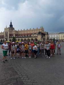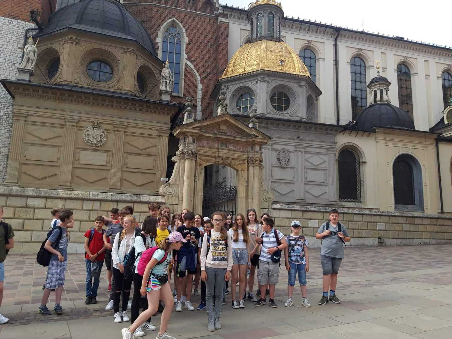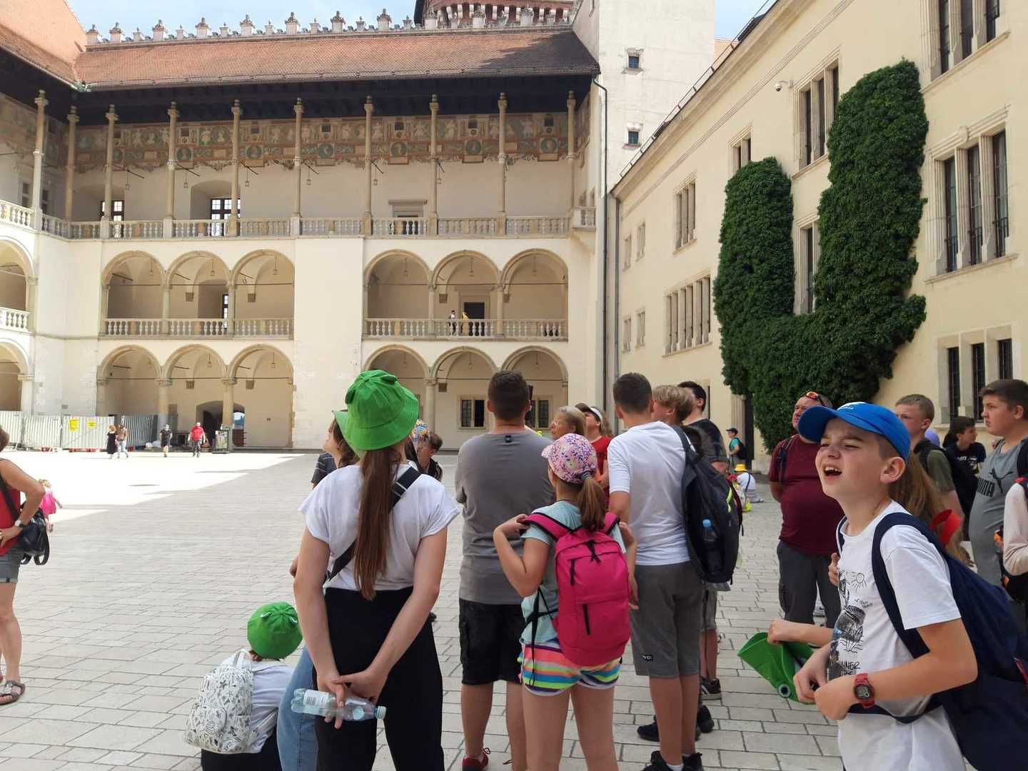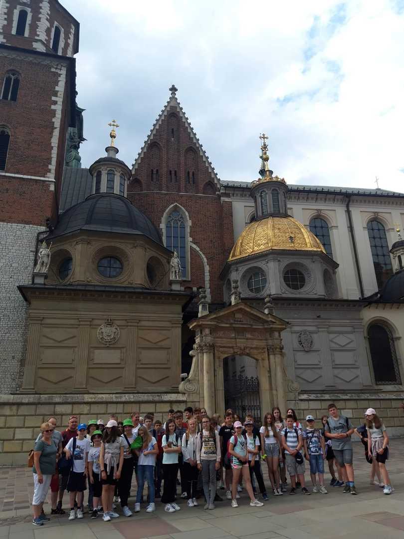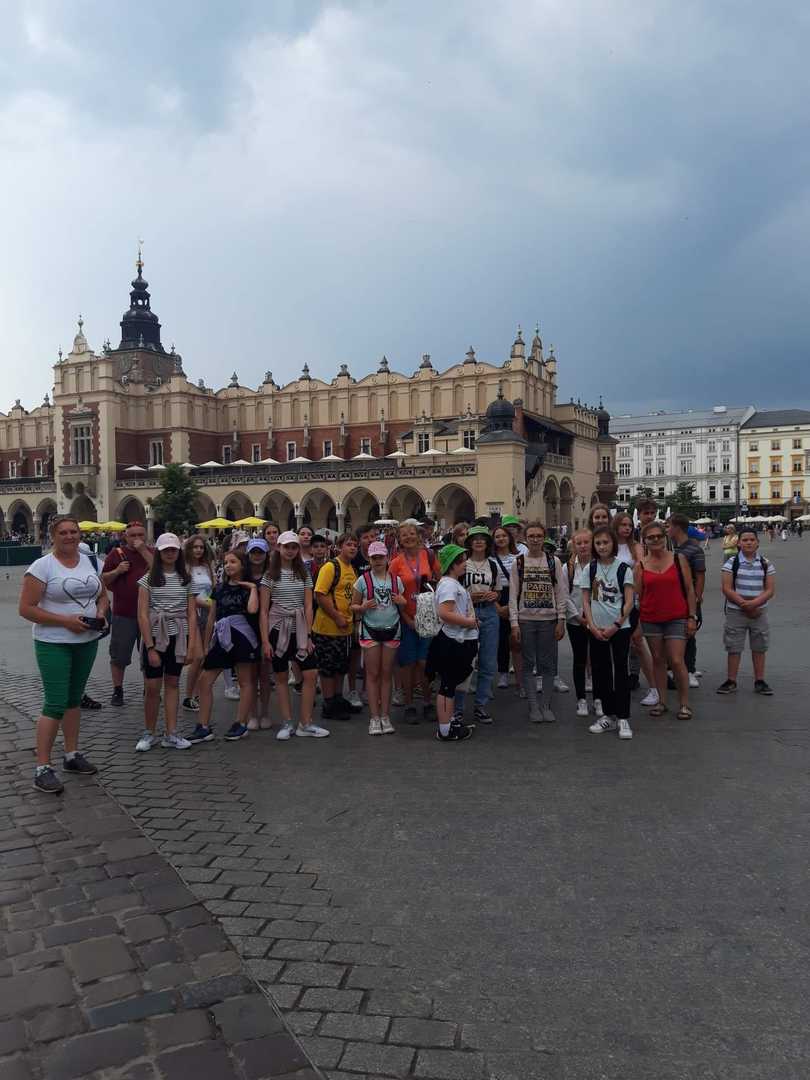 Kolejnym punktem naszej wycieczki był Kraków. Zwiedzanie dawnej stolicy Polski rozpoczęliśmy od Wzgórza Wawelskiego. Uczniowie zapoznali się z historią tego miejsca, odwiedzili Kaplicę Zygmuntowską, podziwiali Krużganki Wawelskiego Zamku. Spacerem przeszliśmy na Rynek Główny, zobaczyliśmy Sukiennice, Kościół Mariacki, a następnie Dom Matejki znajdujący się przy ulicy Floriańskiej.